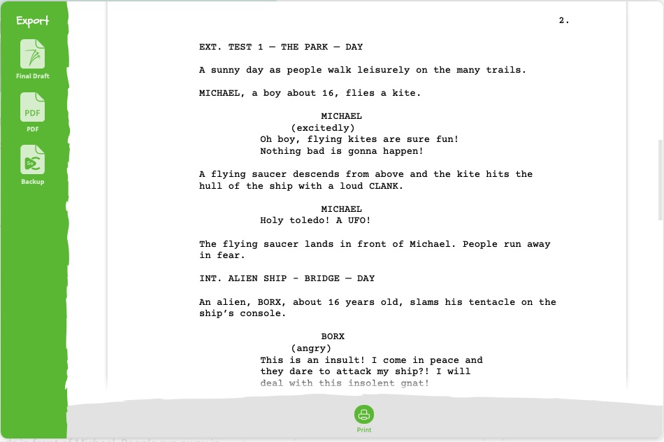 You might think that the resulting script doesn’t look like a script at all, but that’s okay. SoCreate automatically sets the file into the correct script format when you print or export it to a PDF file.